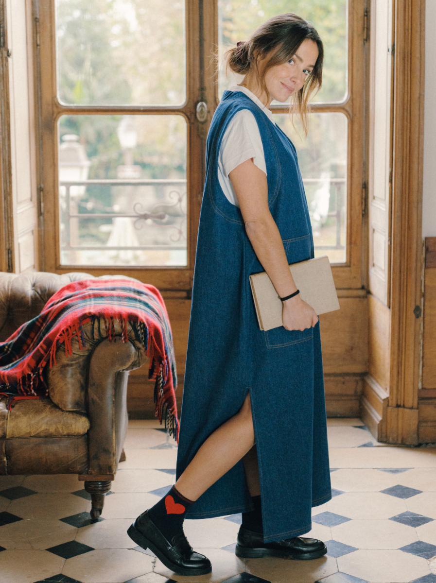 Sa coupe longiligne et fluide presque architecturale, est faite pour la vie réelle, très pratique et confortable, elle habit d'un rien et permet une liberté de mouvement. Tamara rappelle les robes de travail, les tabliers épais et les vêtements de labeur.