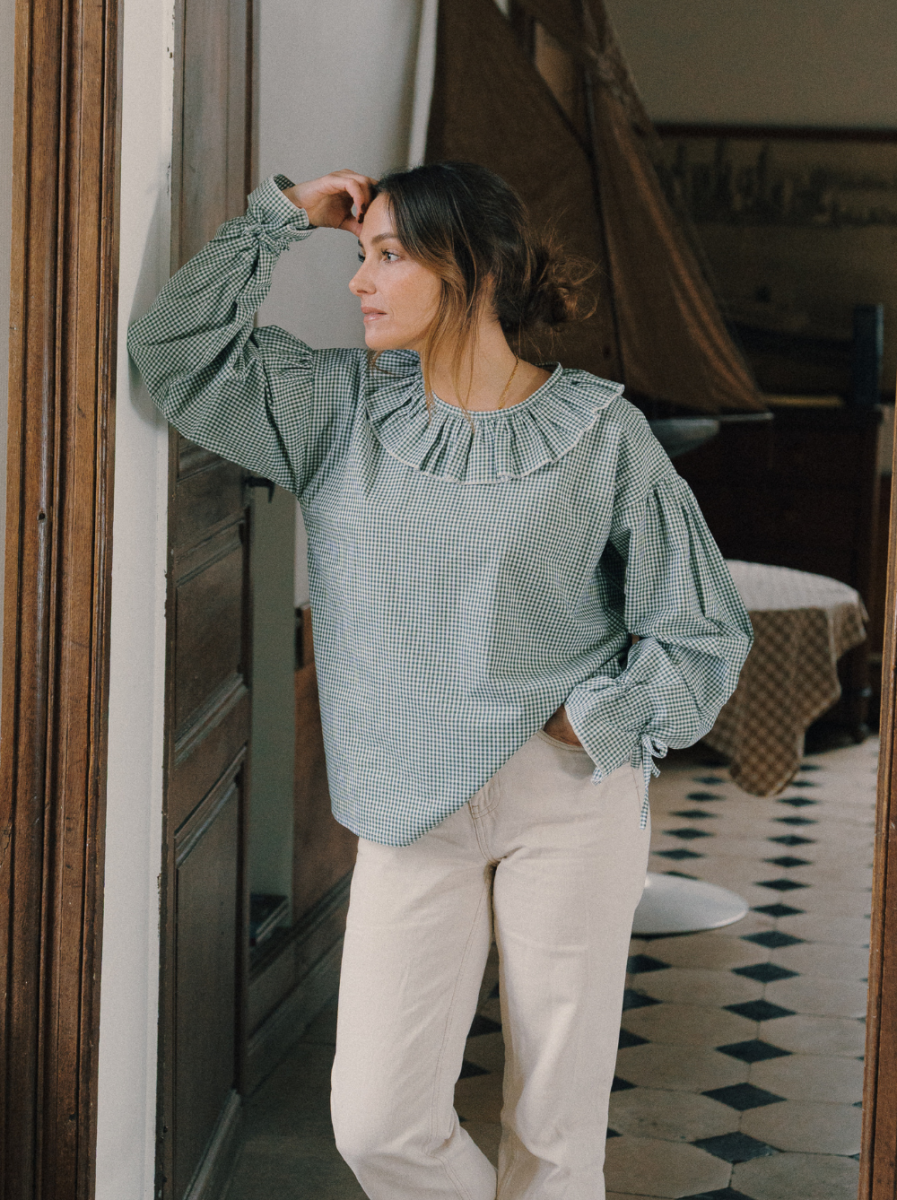 La chemise Léontine est la pièce féminine et sophistiquée à avoir dans son dressing. Son col arlequin et ses poignets à nouer offrent un style frais et coloré. Son imprimé vichy vert est intemporel et saura s'associer facilement à toute votre garde-robe.